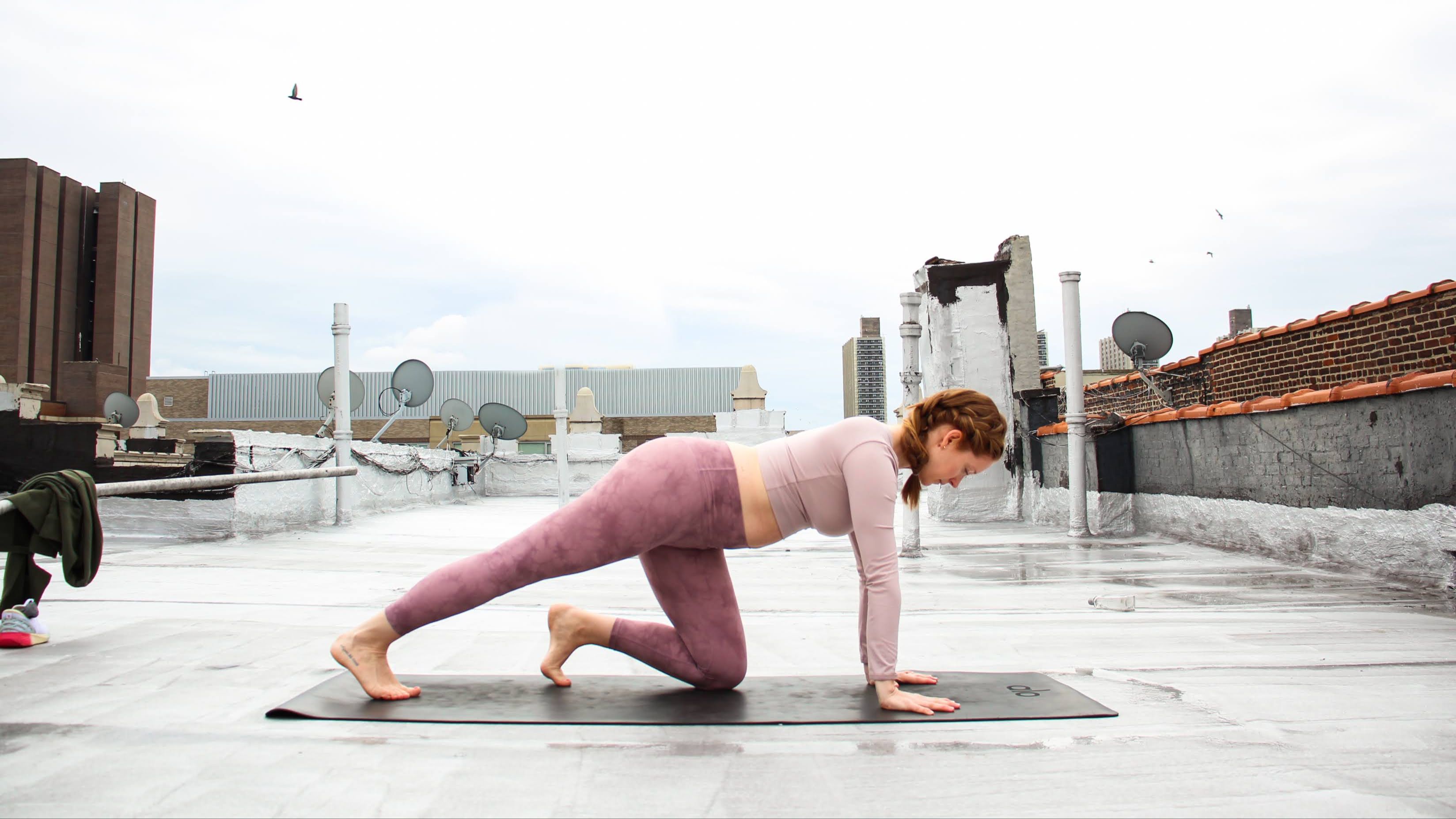 Hands and knees is a great starting position because it reduces pressure on the pelvic organs.
